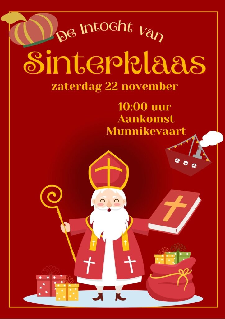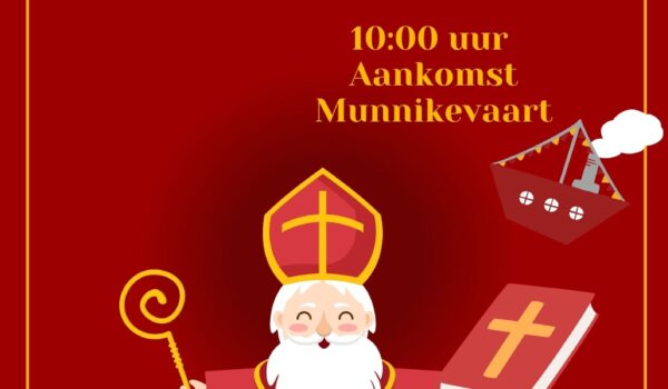 Zaterdag 22 december komt Sinterklaas om 10:00 uur aan bij de Munnikevaart.