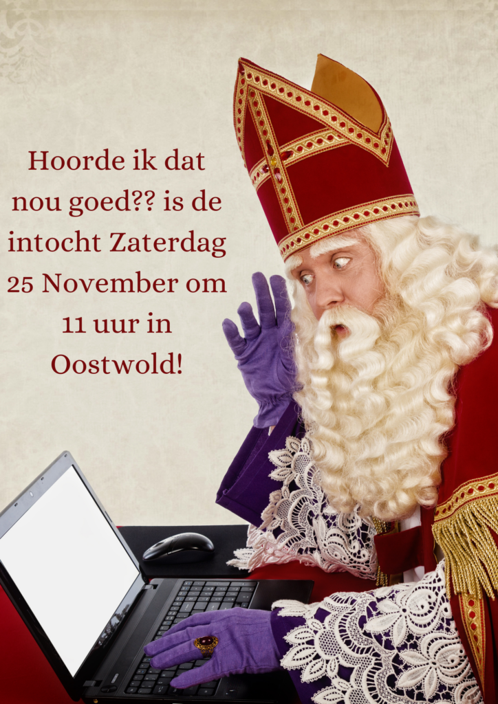 Sinterklaas heeft ons laten weten dat hij dit jaar ook weer langs komt in Oostwold! Hij komt om 11.00 uur aan bij de Munnikevaart! (meer info volgt)